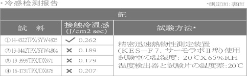 具體產(chǎn)品,其冷感值列示如下:
