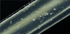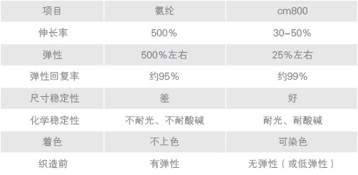 CM800是聚酯系列,成分為PTT/PET的雙組份產(chǎn)品,由于PET與PTT二者熱收縮率不一樣,因此在熱作用下,纖維就發(fā)生了如下圖的變化,從而有了彈性,該彈性在非溫度破壞下,基本不會(huì)失彈。它是一定彈性織物中,良好的氨綸升級(jí)品。