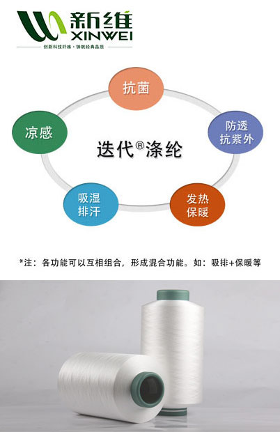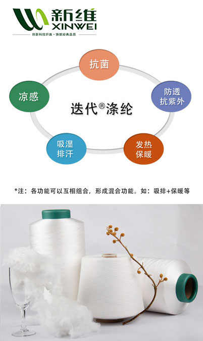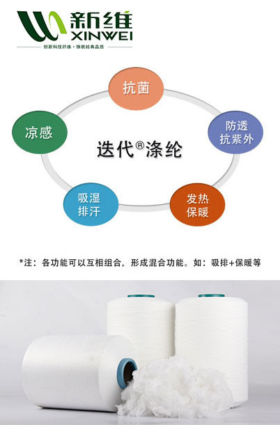 抗菌吸濕排汗再生纖維的原料為再生環(huán)保滌綸,通過在再生環(huán)保滌綸的吸濕排汗紡制過程中加入納米級銀,達到吸濕排汗和抗菌的雙重功效。